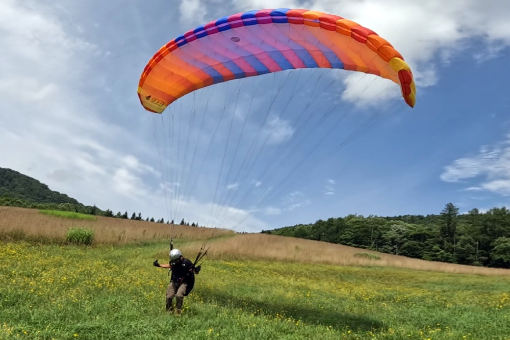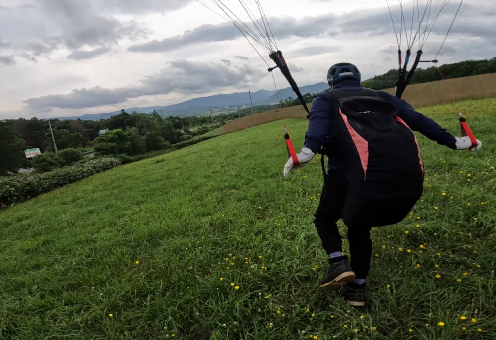 朝一雲多く比較的穏やか。このままなら飛べそう!?と準備しますが、ビューっと吹いて練習モード。