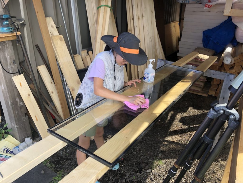 関野さんから頂いたガラス板をきれいに拭いてくれました。