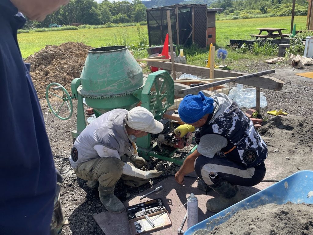 皆さん、作業の流れを理解し始めたころにミキサーのエンジンストップ・・・。