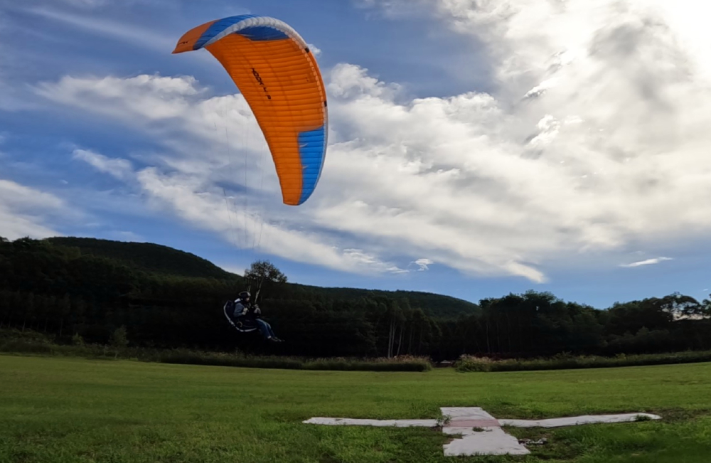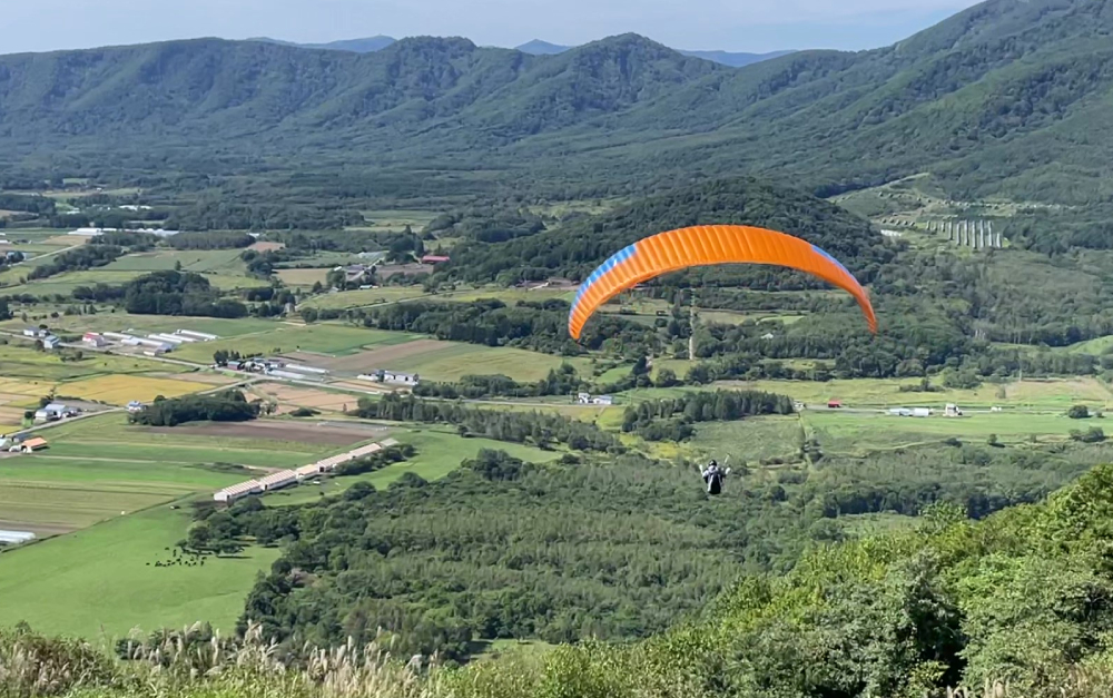 on 10 9月 2025 投稿者: Paralife-Hokkaido スクール日記 9/10(水) 穏やかに2本! 風は穏やか~。日射があり、サーマルに期待ですが、穏やかでした~ 午前のみのK澤さん。久しぶりのC葉さん。 弱~~いサーマルのみ。送迎車の待ち時間で建築作業のお手伝いをいただきました!ありがとうございます!これで壁のパネルは全てできました! ランディングは北なのか、南なのか。 カラッと晴れて気持ちの良いフライトでした。午後はC葉さんのブルーベリー移植。農園管理などして解散。私たちは建築作業&カボチャバイトなど。