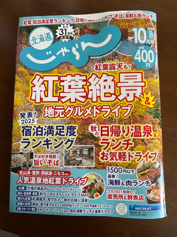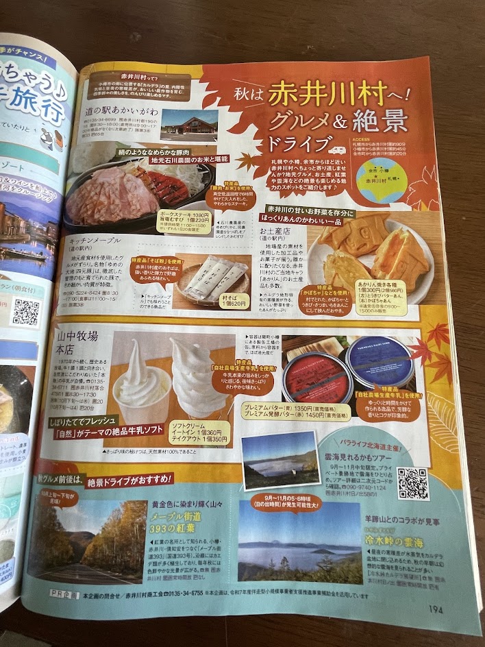 じゃらんの今月号(10月号)で赤井川の紹介が1ページ組まれました。