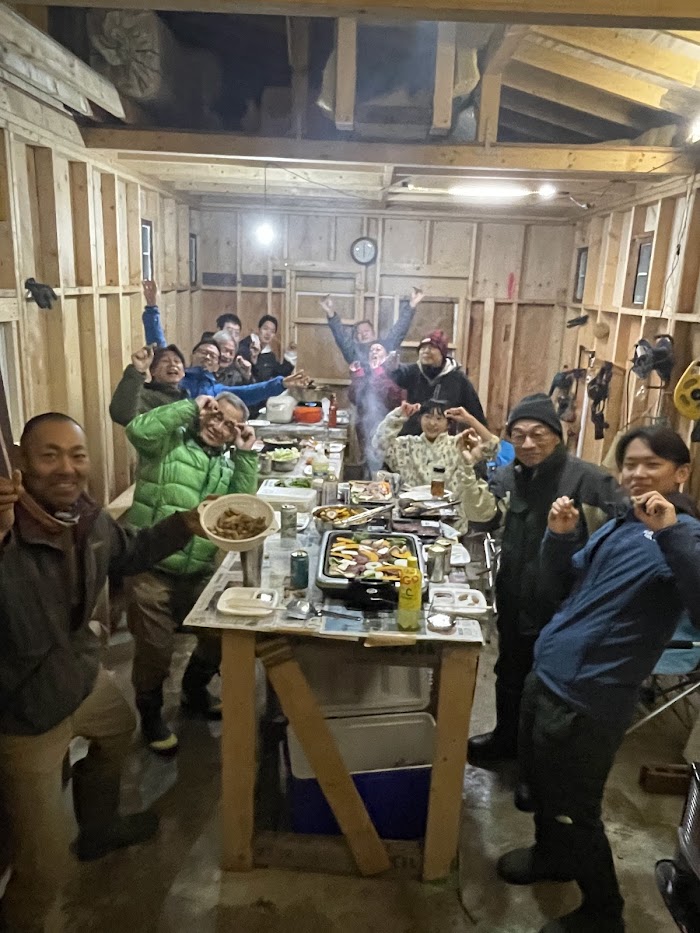 忘年会は建築現場内で18時頃スタート!