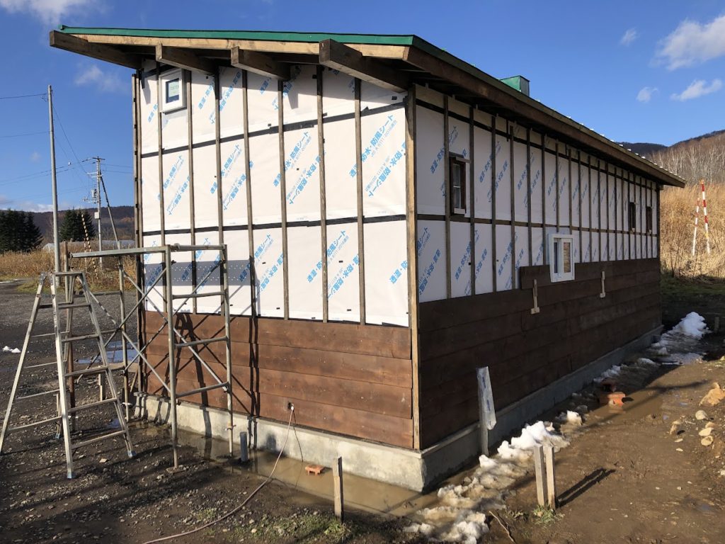 ツアー 0日目(11/12(木))。貴重な晴れで、カナちゃんと外壁張りに着手!