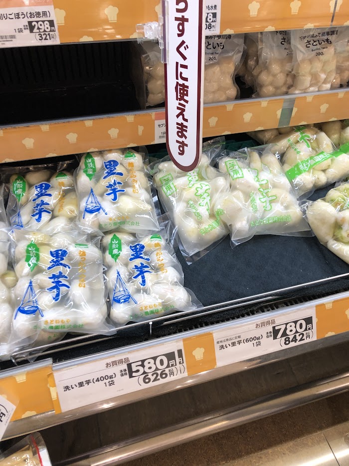 スーパーでは下ごしらえしてある里芋や、芋煮のストレートスープが売ってあります!