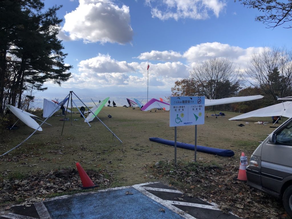 今日は大学生の新人戦。ハングやパラの初級者(10本前後)がテイクオフとランディングの安定性、安全性を評価する大会が開催!朝から準備しています。