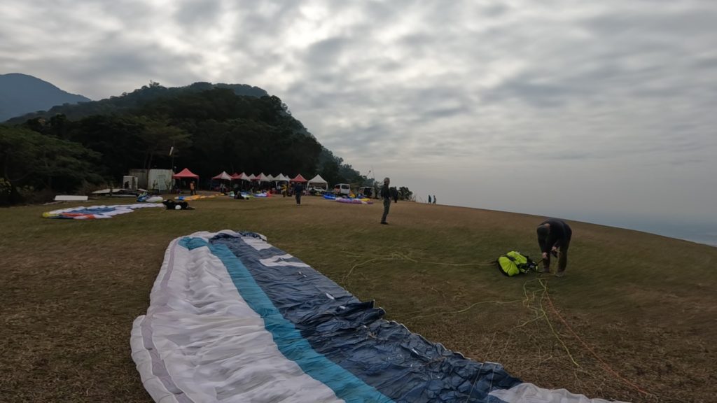 皆さん風待ち。私は昨日のテイクオフを反省して練習フライト。