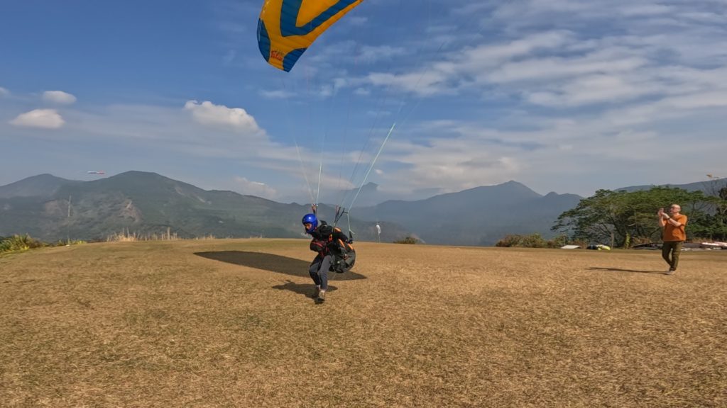何度か山頂でライズアップの練習をしてフライト。ランディング上空で少し粘れました!