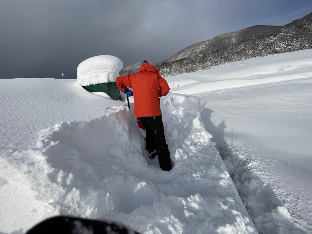 新拠点の屋根にも腰上まで・・・。千歳から協力助っ人が来てくれて除雪作業をしてくれました。本当にありがとうございます!